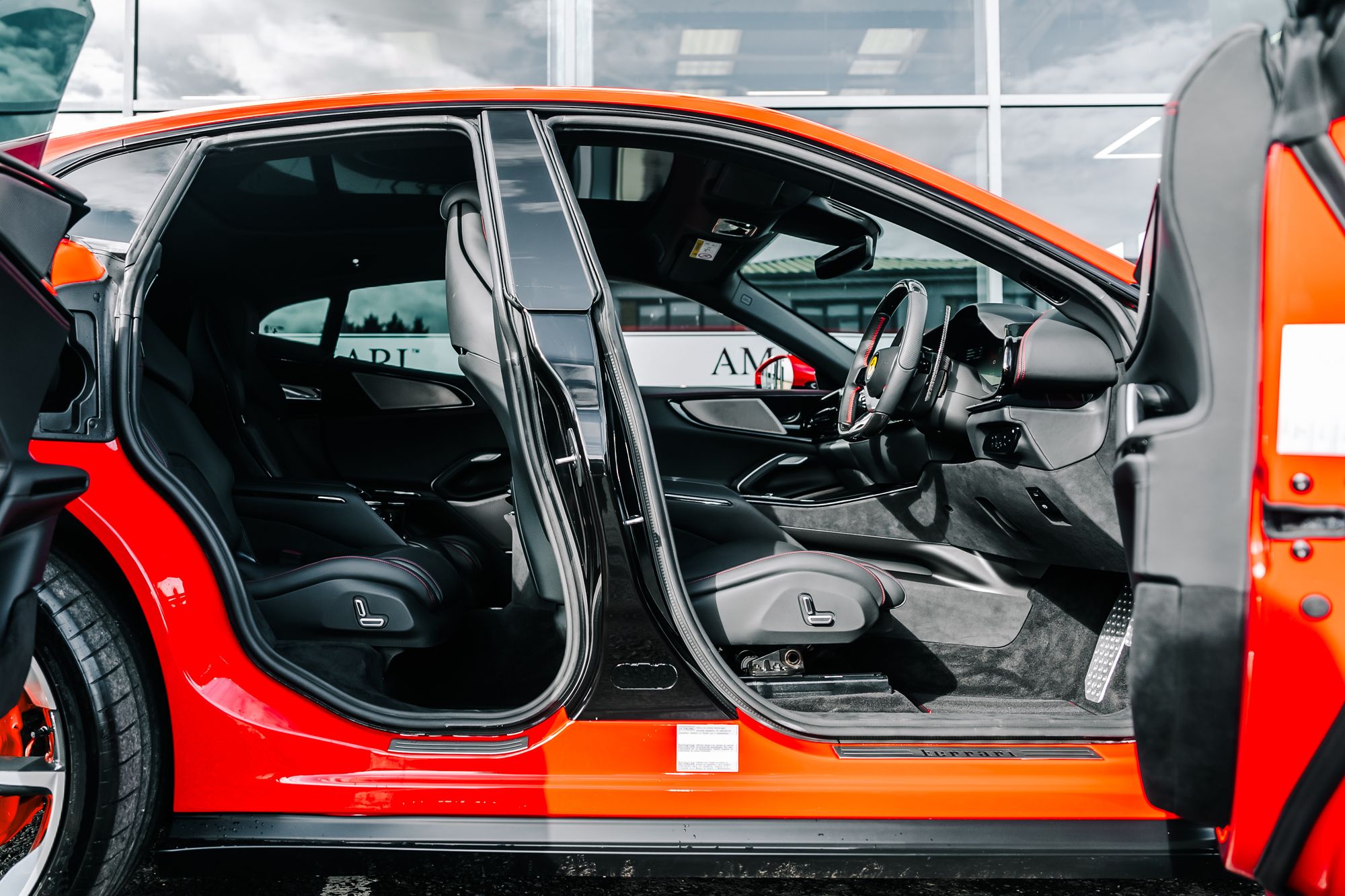 This particular Purosangue is finished in Rosso Corsa Fer. 322 and equipped with a Nero Hide and Alcantara interior, complemented by a range of extensive Carbon Fibre options and premium features like ventilated and heated seats and a panoramic glass roof.