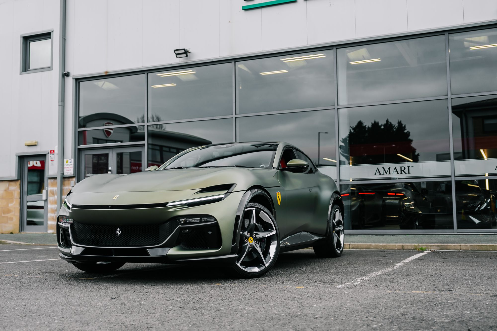Amari Supercars are proud to present this 2024 (24) Ferrari Purosangue finished in the rare Matte Verde Masoni with a bold Orange Hide interior. This is an exceptionally rare specification, with this example being the only one of its kind currently for sale.