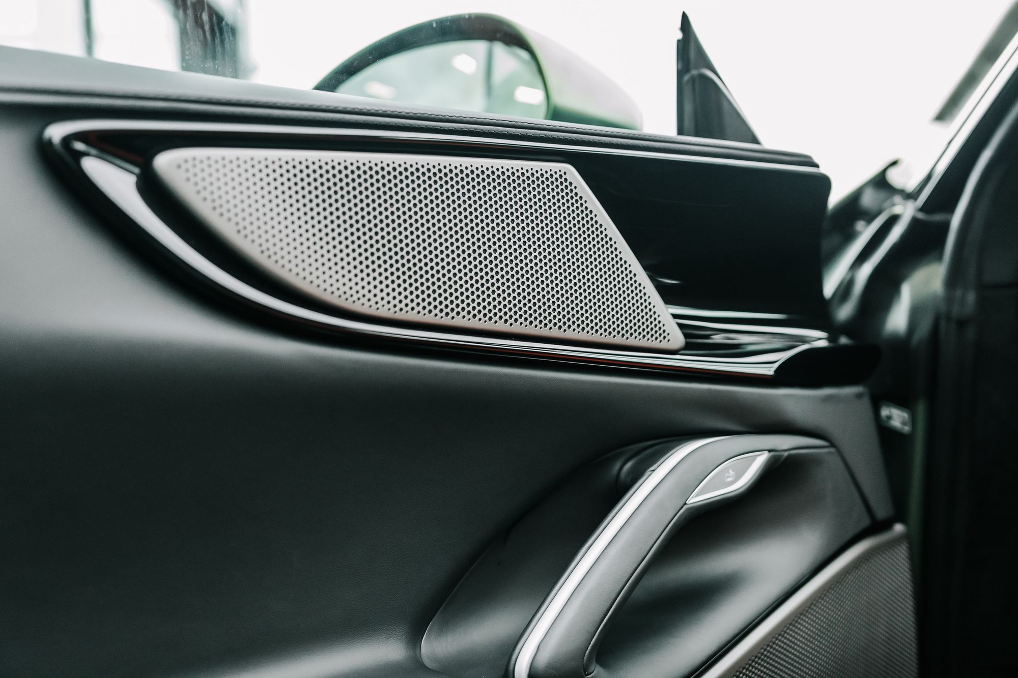 This Ferrari Purosangue features a bold specification with Active Matrix LED headlights, airbrushed shields, a panoramic roof, and an extensive suite of carbon fibre elements including the front spoiler, rear diffuser, wheelhouse flares, underdoor covers, and exterior sill kicks. Glossy black brake calipers, forged diamond wheels, titanium wheel stud bolts, and privacy rear windows complete its dynamic exterior. The interior is finished in Nero leather with an upper Nero leather compartment and contrasting orange leather accents on specially designed seats. Cavallino stitching on the headrests, aluminium footrests, and tailored mats add a refined, personalized touch. A heated carbon fibre steering wheel with LEDs, and a yellow rev counter enhance driver engagement. Technology includes a high end audio system, surround view, Smartphone Interface, wireless charging, and MyFerrari Connect functionality, supported by comfort features like the air quality sensor. Practical additions such as the luggage compartment kit, genuine winter wheels, and the SVR anti theft system with card ensure year round usability and peace of mind.
