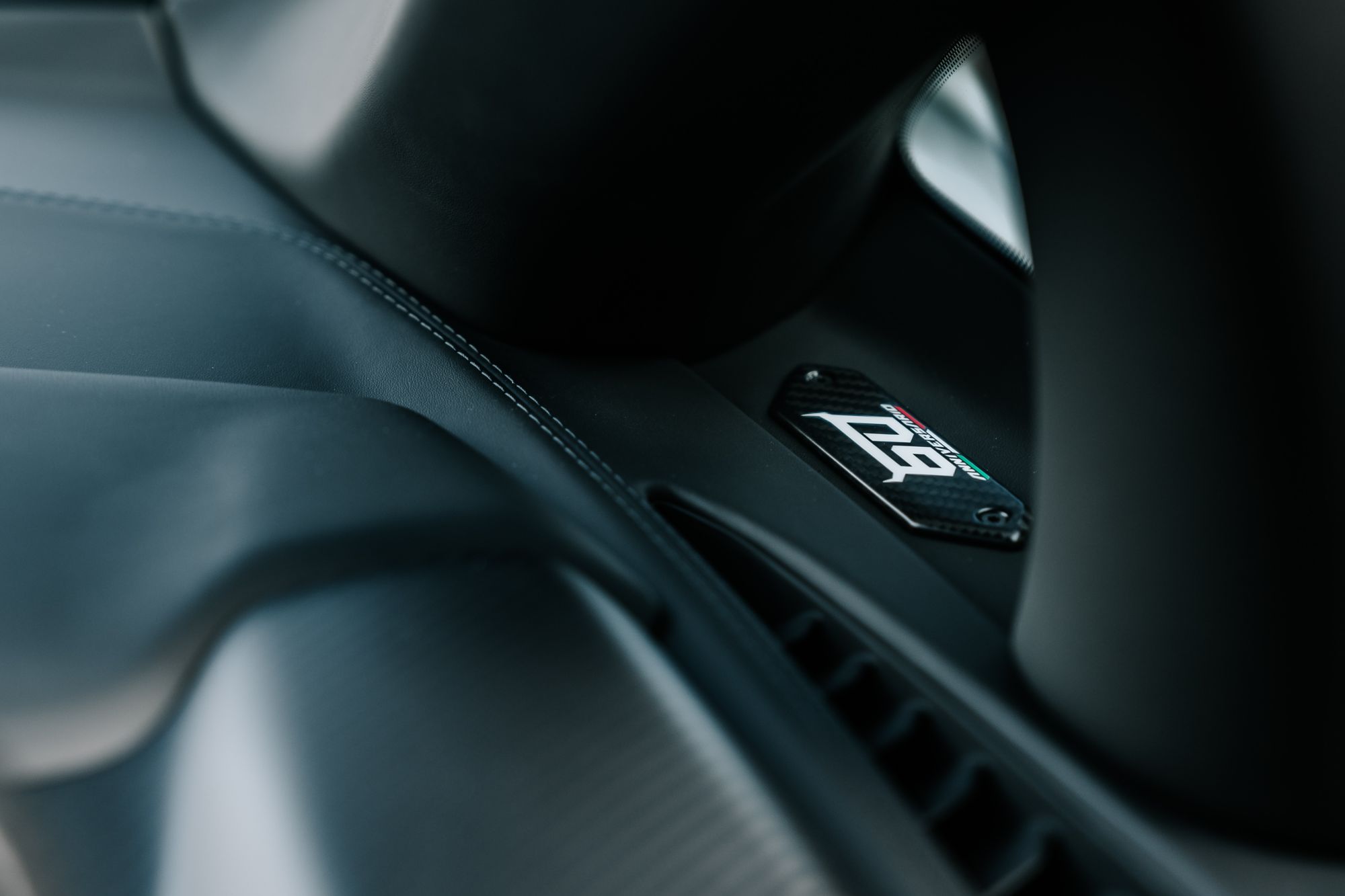 To further personalize the interior, contrast color leather in Nero Ade with Rosso Alala is employed, creating a striking visual impact. A livery stripe adorns the rear diffuser in Rosso Mars, adding a touch of racing heritage. Completing the package is the Lamborghini rear logo in Shiny Black, a testament to the brand's iconic legacy.