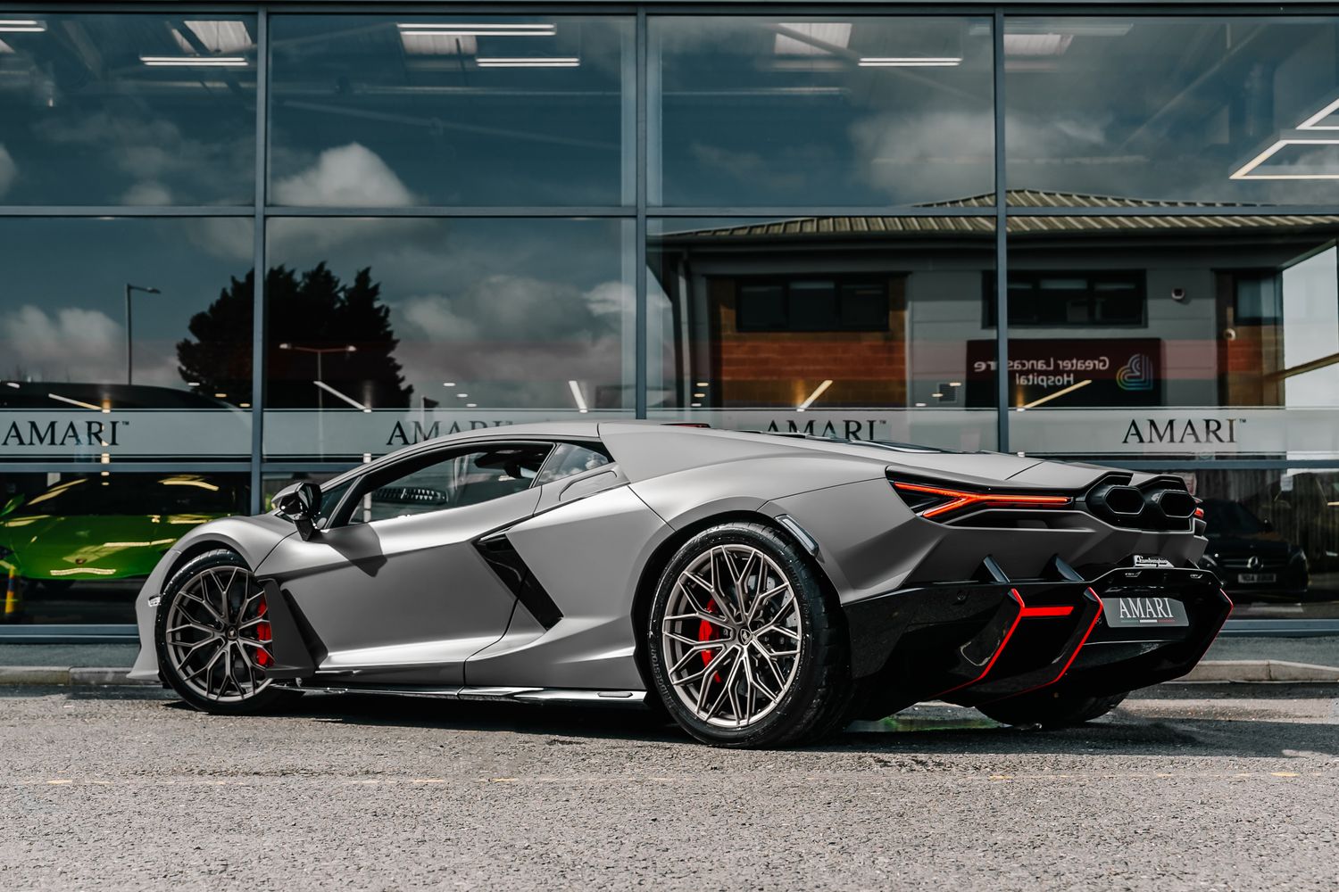 Revuelto is equipped with a Touch Passenger Display and Smartphone Interface for seamless connectivity. Brake calipers finished in Rosso add a vibrant contrast to the ensemble. The windscreen frame at the front is styled to perfection, complemented by the High Gloss Style Package. The Headlamp Package ensures optimal visibility, while the Aerodynamic Door Fin in Carbon enhances both aesthetics and performance.