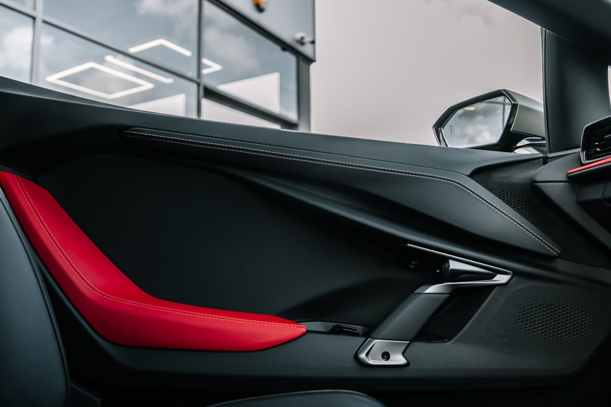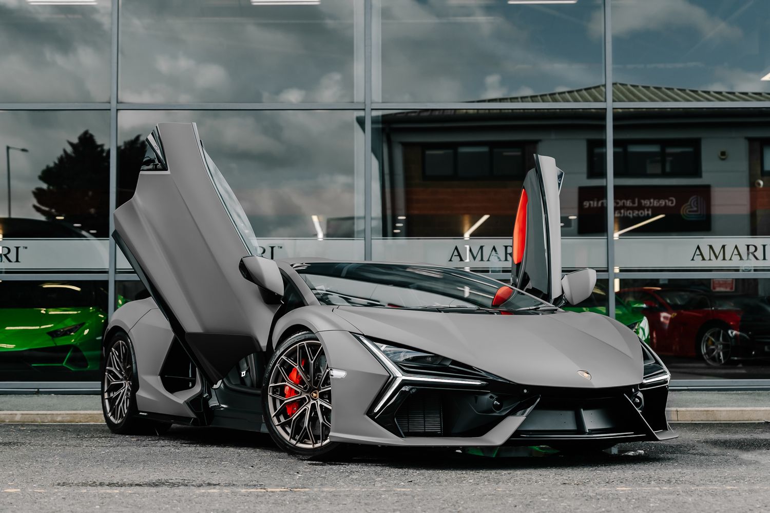 The exterior of Revuelto is adorned in Grigio Vulcano, while its interior envelops occupants in Nero Hide, with stitching in Bianco for a striking contrast. Adding a touch of exclusivity, each headrest boasts an embroidered Lamborghini Shield. The luxury extends to the floor mats, which feature leather piping and stitching. Rolling on 20/21-inch Forged Rims Triguero Matt Titanium, Revuelto commands attention at every turn.