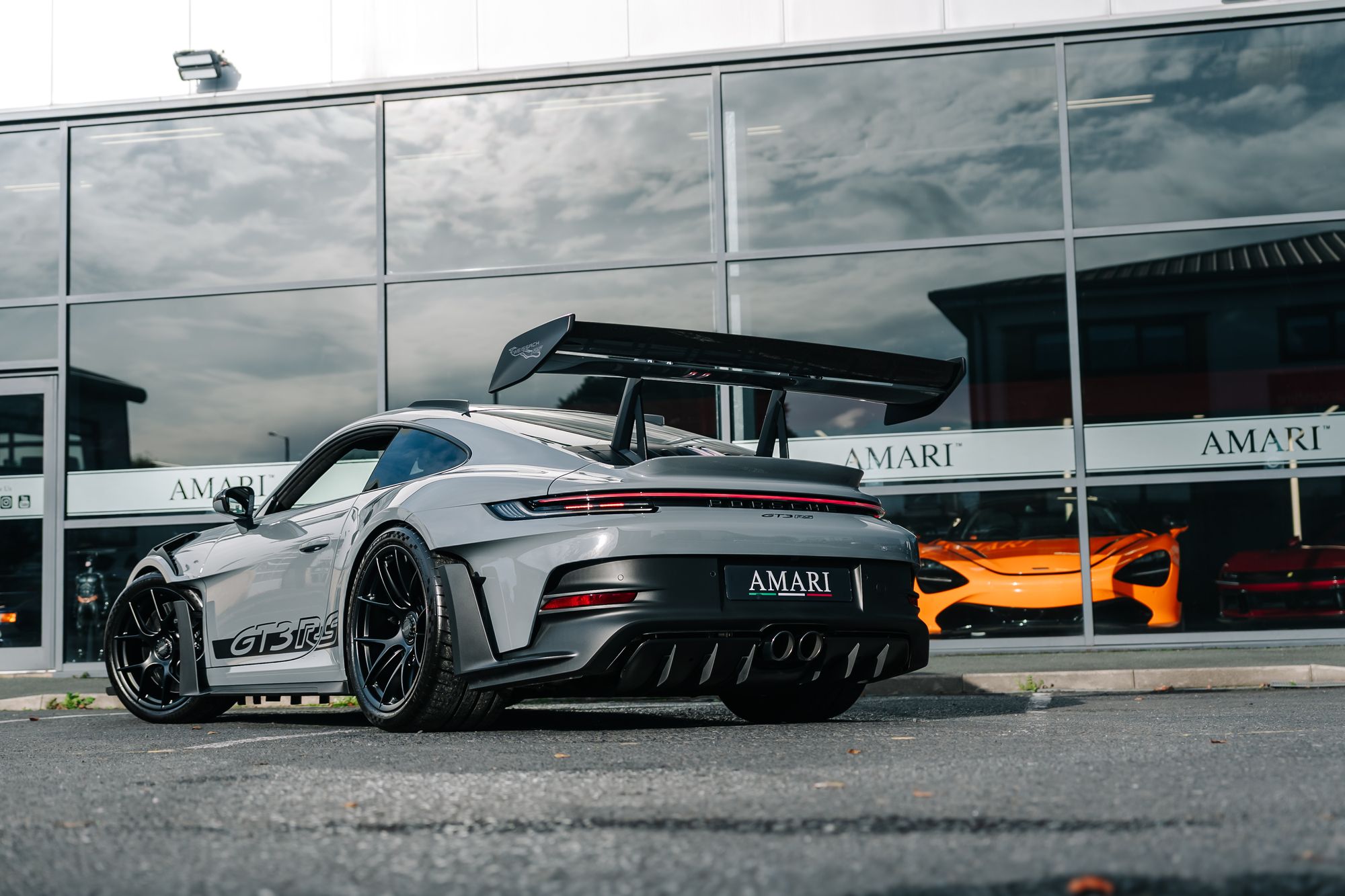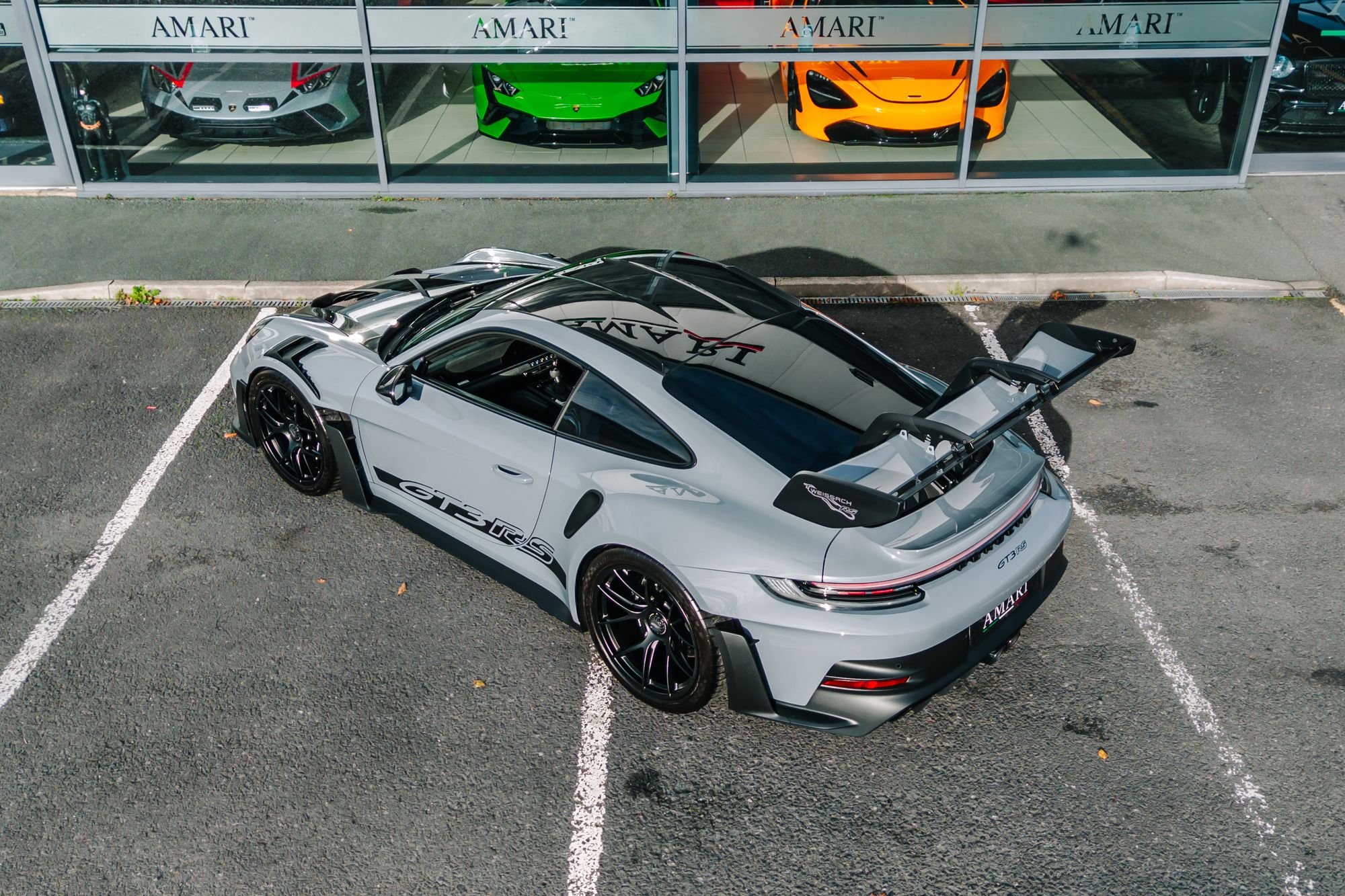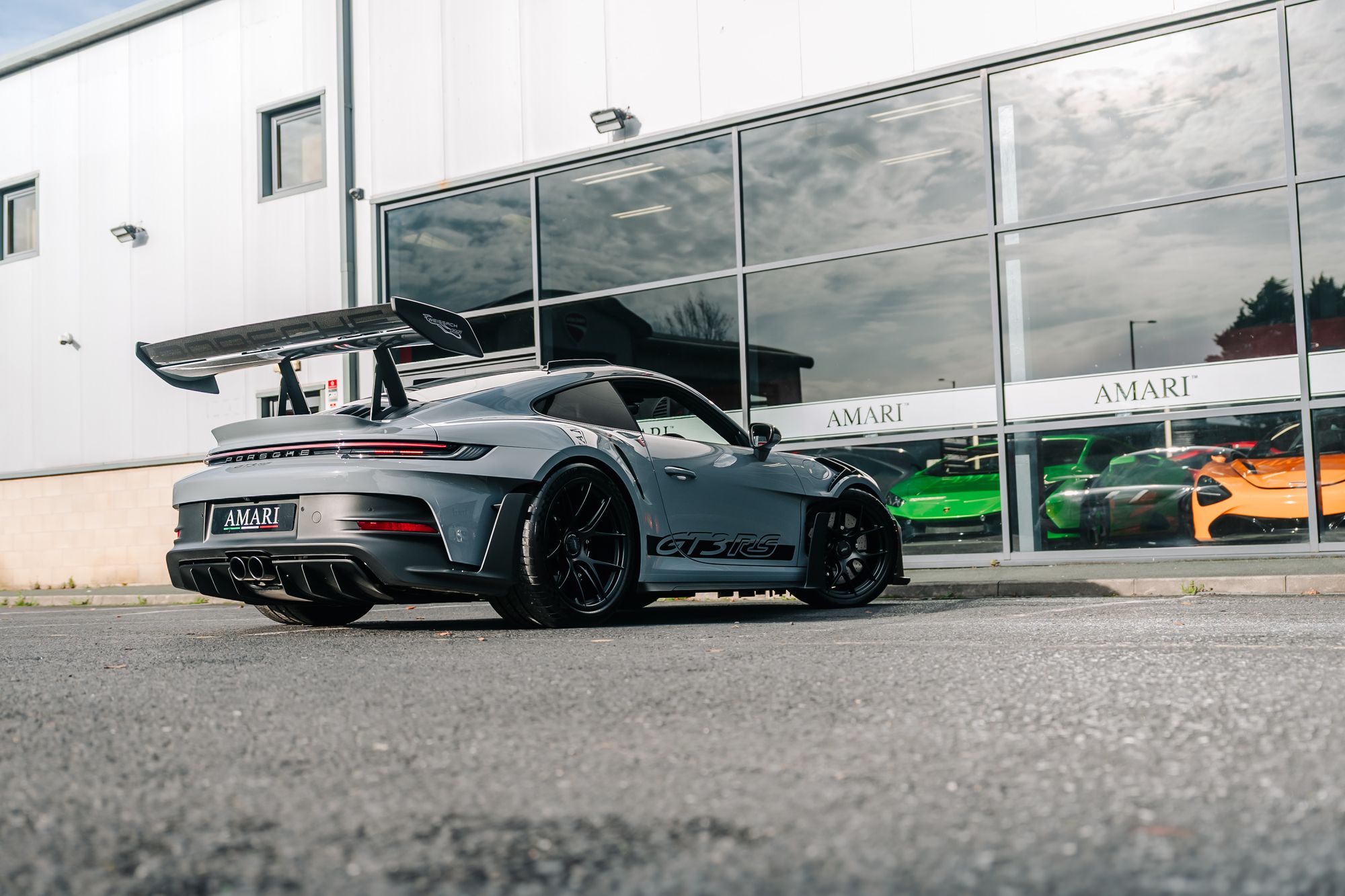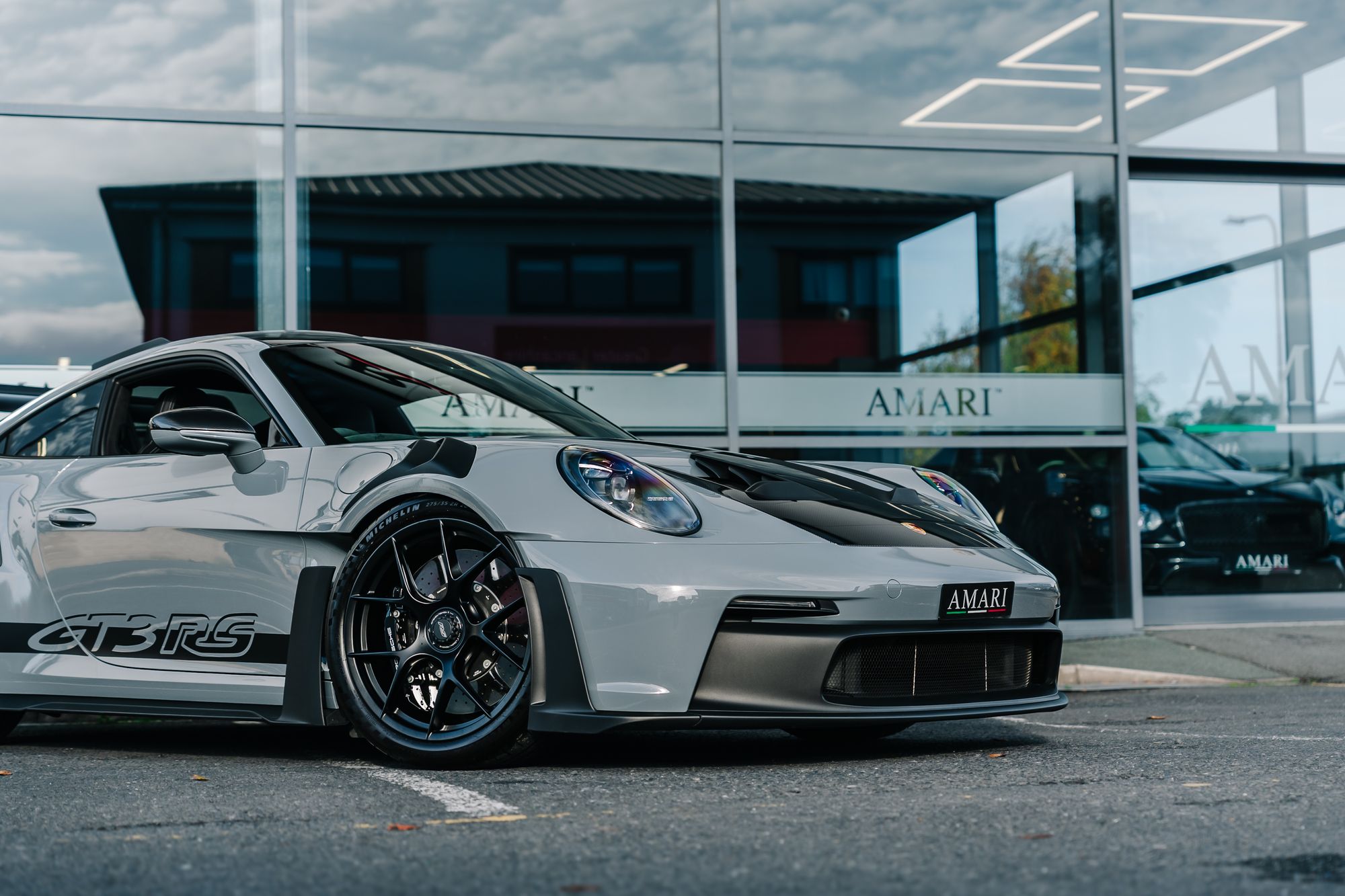 This 2024 Porsche 911 GT3 RS Weissach is the ultimate track-bred 911 for the road, marrying motorsport performance with precision engineering. Powered by a 4.0 litre naturally aspirated flat-six that revs to 9,000 rpm and delivers approximately 525 PS, the GT3 RS reaches 0-62 mph in about 3.2 seconds and hits a top speed close to 184 mph (296 km/h). What elevates this example further is the highly desirable Weissach Package — the pinnacle of Porsche’s lightweight and performance upgrades. This includes carbon-fibre bonnet, roof and wing components, forged magnesium wheels, and a CFRP roll-cage version as part of the track-centric enhancements.