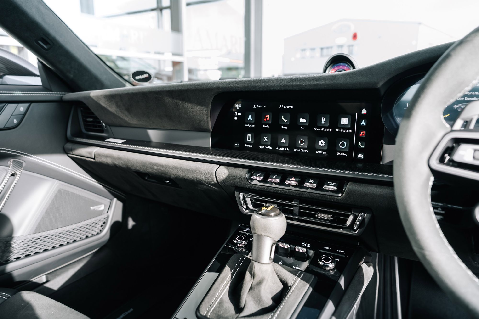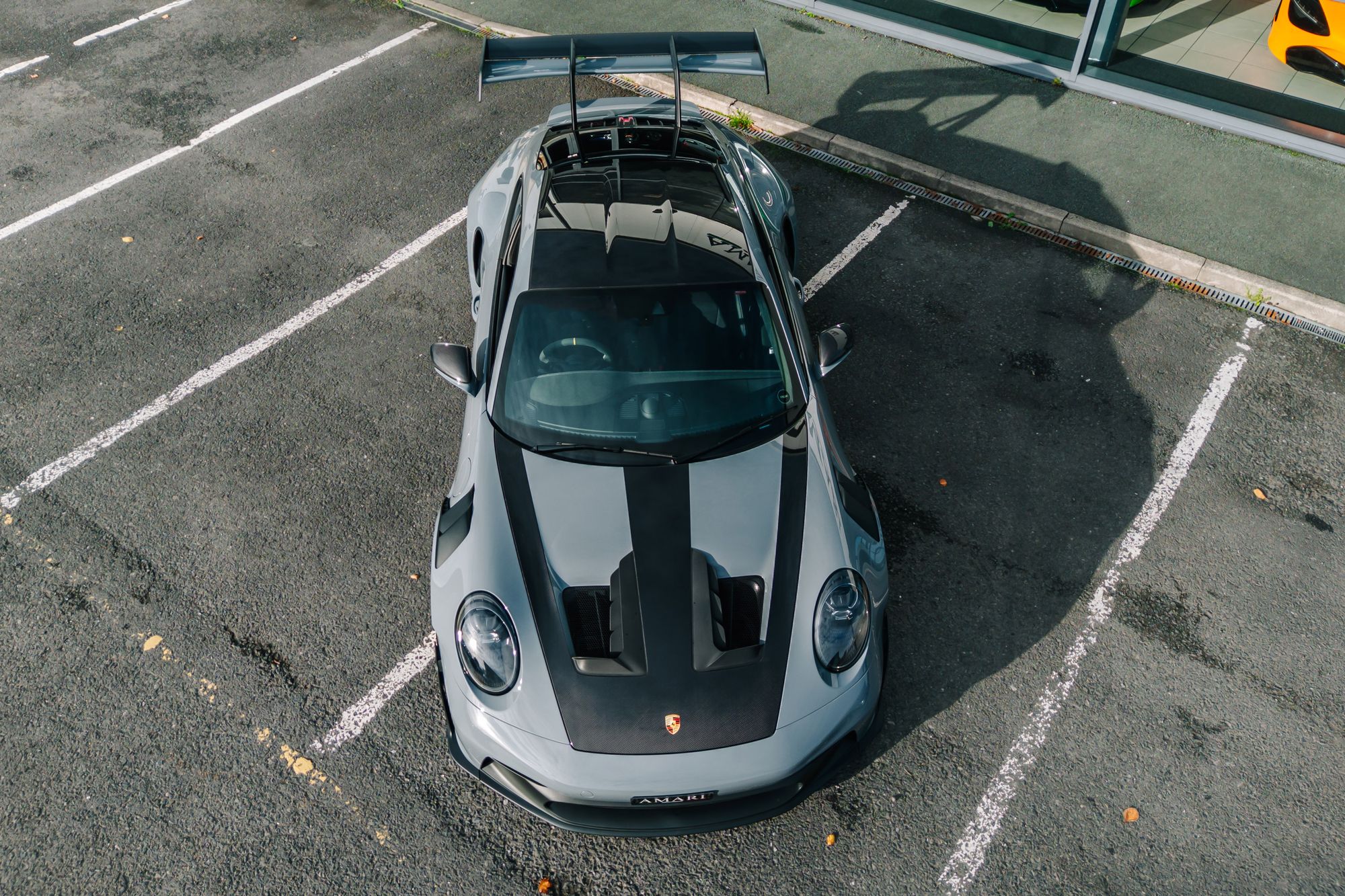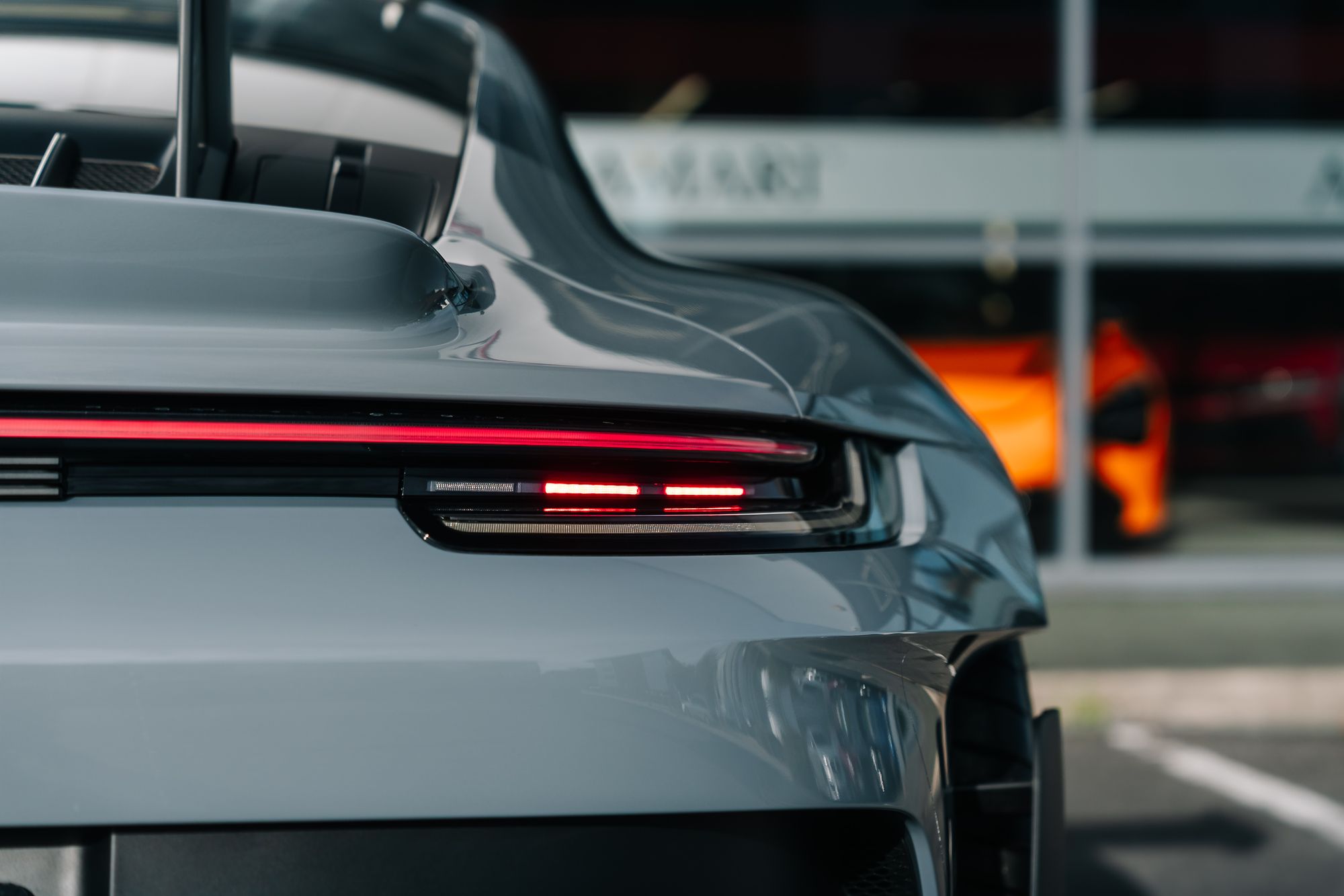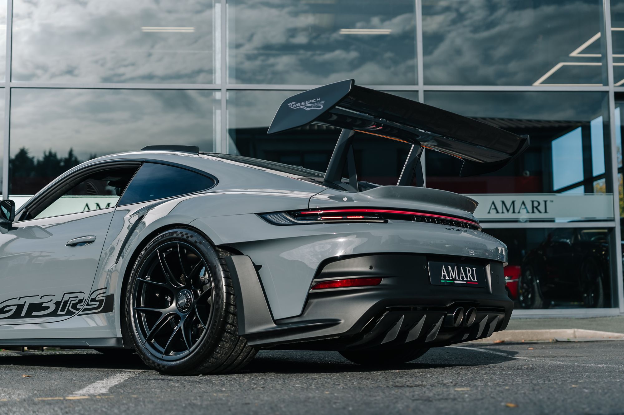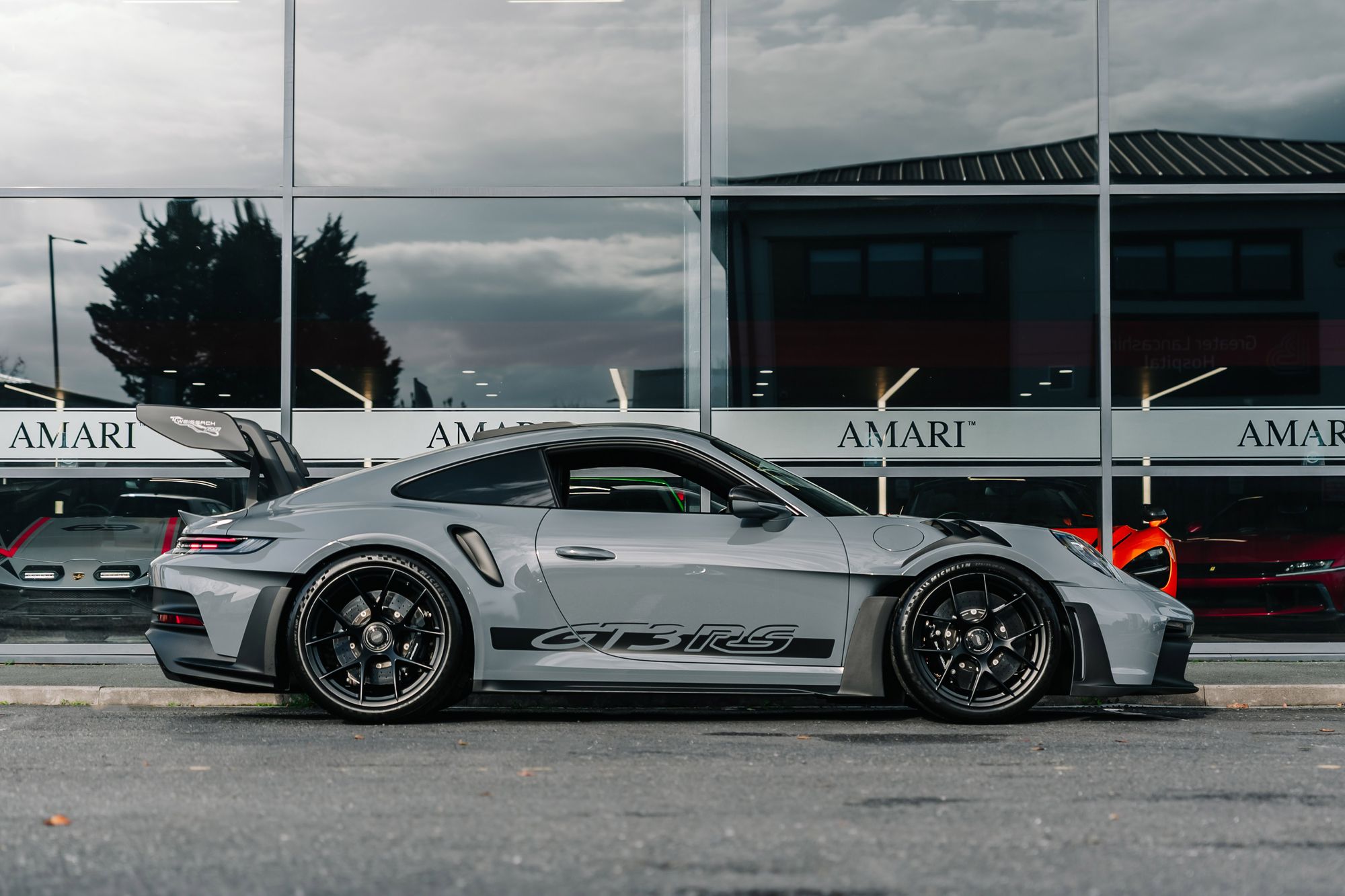 This 2024 Porsche 911 GT3 RS Weissach is the ultimate track-bred 911 for the road, marrying motorsport performance with precision engineering. Powered by a 4.0 litre naturally aspirated flat-six that revs to 9,000 rpm and delivers approximately 525 PS, the GT3 RS reaches 0-62 mph in about 3.2 seconds and hits a top speed close to 184 mph (296 km/h). What elevates this example further is the highly desirable Weissach Package — the pinnacle of Porsche’s lightweight and performance upgrades. This includes carbon-fibre bonnet, roof and wing components, forged magnesium wheels, and a CFRP roll-cage version as part of the track-centric enhancements.